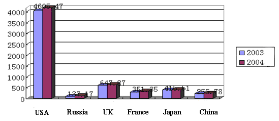 and 2004 (unit: billion US dollars)