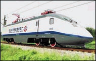 A bullet-shaped locomotive designed with a maximum speed of 305 km per hour, the highest locomotive so far in China, came off the production line September 3 in the Zhuzhou Locomotive Plant in central China's Hunan Province.