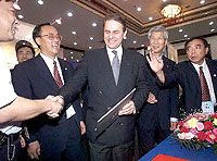 "Yesterday I was at rowing championship, and today I am here in Beijing," said Rogge.