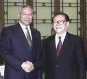 During the day, Chinese President Jiang Zemin, Premier Zhu Rongji and Vice Premier Qian Qichen met with Powell respectively and Foreign Minster Tang Jiaxuan held talks with him.
