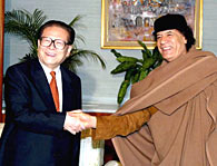 On Saturday afternoon, Jiang and Khadafy held talks focusing on bilateral relations, African affairs and international issues.