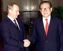 Chinese President Jiang Zemin and Russian President Vladimir Putin held official talks in Beijing Monday morning.