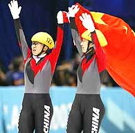 Five-time world overall short-track speed skating champion Yang Yang (A) won China's first-ever Winter Olympic gold medal with a runaway victory in the 500m final on Saturday.