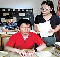 Approaching the annual college entrance examination period which falls on July 7 and 8 this year, some blind students, for the first time, have their chance for higher education. Shanghai Teachers University is ready to accept its first batch of blind candidates from inland China, and the Shanghai Education and Examination Bureau has set special entrance examinations for them.