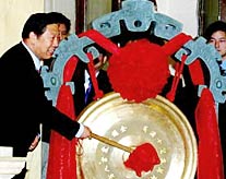 The bank governor was the first to strike the bronze gong at the Shanghai Gold Exchange, located in a European-style mansion on the Bund, now Shanghai's prestigious financial street.