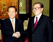 Lee hailed the rapid growth of bilateral ties during the past 10 years. He particularly highly commended the important contributions made by President Jiang and the Chinese government to the peace process in the Korean Peninsula, and peace and stability in northeast Asia and the world at large.