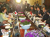 She said that in handling historical issues the Japanese side would abide by relevant speeches made by former Prime Minister Tomiichi Murayama and the principles set forth in the Japan-China Joint Statement and other documents.