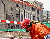Project Manager Pei Jianping said the most crucial part of the project was the hoist before moving since the aged music hall was vulnerable to any sharp change of its inside force system.
