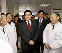 Accompanied by leading local officials, Hu, also general secretary of the Communist Party of China (CPC) Central Committee, talked with medical workers who have been engaged in controlling the epidemic there and 23 hospitals in Guangdong.