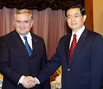 During a meeting with French Prime Minister Jean-Pierre Raffarin, who arrived Friday morning on an official visit, Hu said China would continue to promote dialog with the EU and strengthen exchanges and cooperation in trade and other areas.