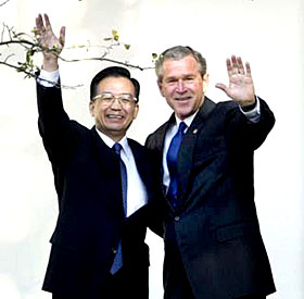 On Sino-US trade relations, Wen said the expansion of China's economic cooperation and trade with the United States has not come by easily. Trade between the two countries was less than US$2.5 billion 25 years ago, but the annual volume now has exceeded US$100 billion.