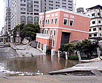 Blamed on an accident concerning nearby cross-river rail tunnels still under construction, the earth subsidence began on Tuesday near the Zhongshan South Road, causing a building in that area to collapse and several others to become increasingly precarious, followed later by the cracking of the floodwall.