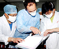 During their visits, experts of the team also inquired about the epidemic reporting mechanism, the work process at fever clinics, and SARS prevention and medical workers' self-protection measures at hospitals.