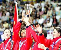 The Chinese, winners at the World Grand Prix in Italy in August and the Asian Championship in Vietnam in October, completed their title hat-trick at the international stage in 2003 with an 11th straight win at the two-week-long tournament.