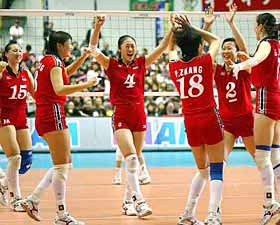 China, who had secured a top two finish and a spot in the Athens Olympics in 2004 before Saturday, wound up the single round-robin tournament in style with the 25-18, 25-18 and 25-13 victory over the hosts.