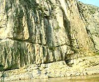 Others say the plank road was developed simply for people to pass. If this were true, one line of holes would be enough to hold wooden boards, but two lines of holes were found in many places. Why? If as someone supposed the upper row was used for a canopy, why was the space between the upper and lower holes not enough for a person to stand erect? What's even stranger is that some holes were dug under the cliff while there was enough space in a comparatively safe place. If people wanted to pass the road, they would need to crawl over. In some other places, a slope had been made ready, but why would people still dig out plank roads on the cliff?