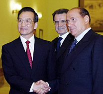 Chinese Premier Wen Jiabao and Prime Minister Silvio Berlusconi of Italy, in his capacity as President of the European Council, President of the European Commission Romano Prodi and High Representative for the EU Common Foreign and Security Policy Javier Solana attended the summit.