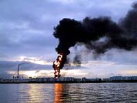 Television pictures showed video of a fire and smoke billowing near an Idemitsu Kosan Co oil storage facility at a refinery in Tomakomai, a coastal city in southern Hokkaido.