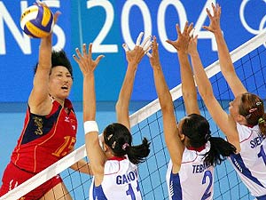The China got off to the better start, opening a 8-5 lead with Zhang Ping particularly effective on attack. Feng Kun and Liu Yanan also combined superbly for the China with two successful blocks.