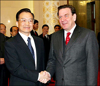 Premier Wen Jiabao and German Chancellor Gerhard Schroeder, who is on a three-day state visit, attended the signing ceremony after their scheduled talks.
