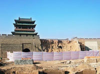 There is a rumor among local people that the county government decided to exploit tourism at the southern gate, since it's the nearest gate to the newly constructed Dayun highway (from Datong to Yuncheng). They approved a project without the permission of Jinzhong Cultural Relics Bureau that caused subsidence.