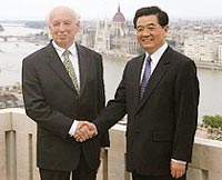 President Hu Jintao and his Hungarian counterpart Madl Ferenc signed a joint statement in Budapest on Thursday, pledging to build a friendly and cooperative partnership between their countries.