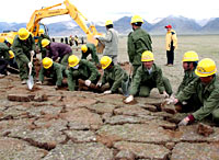 Lu Chunfang, secretary of the Party committee of the Qinghai-Tibet Railway Company, says, "The Qinghai-Tibet Railway has the greatest government investment in environmental protection of any railway in the country. The 2 billion yuan spent on environmental conservation along the railway accounts for 8 percent of the total investment in construction. We intend to build a green corridor across the Qinghai-Tibet Plateau."
