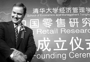 US retail giant Wal-Mart is investing US$1 million to establish China's first retail research center at Beijing's prestigious Tsinghua University. Lee Scott, president and CEO of Wal-Mart Stores Inc., attended the ceremony held on the campus on Tuesday.