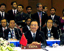 Premier Wen Jiabao met Japanese Prime Minister Junichiro Koizumi and President Roh Moo-hyun of the Republic of Korea in Vientiane on Monday to discuss East Asian cooperation as well as regional and international issues. The three leaders are here to attend the 8th ASEAN+3 Summit.