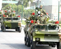 The PLA soldiers performed military parade and drill to demonstrate their outstanding discipline and training.