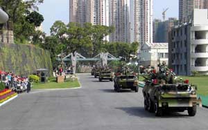 Chief Executive of the Macao SAR Edmund Ho Hau Wah and Bai Zhijian, director of the Central People's Government's Liaison Office in Macao were among visitors to the barracks Sunday.