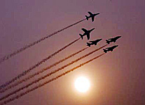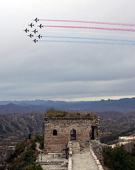 French Air Force's famous aerobatics team, "Patrouille de France" displayed its aerial charm in Beijing Monday amid French President Jacques Chirac's state visit to China.