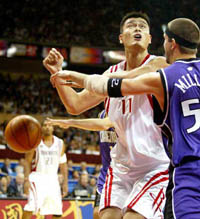 Yao Ming scored 14 points to lead the Houston Rockets to victory over the Sacramento Kings 88-86 in the NBA's first China Game at Shanghai Stadium Thursday evening.