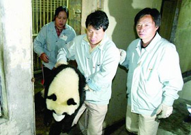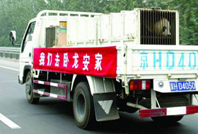 Three giant pandas left the Beijing Zoo on Wednesday for the Wolong Giant Panda Nature Reserve in southwest China's Sichuan Province. In exchange, three of the animals from Wolong will be flown to Beijing on Friday to begin settling into their new digs at the zoo.