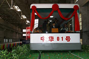 The train, named "Zhonghua 01," is a low-speed train with 32 seats specially made for urban traffic.