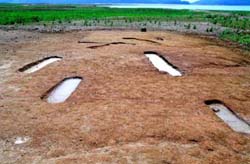 Each of the tombs is about two meters long and 0.5 to 0.6 meters wide.