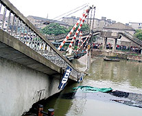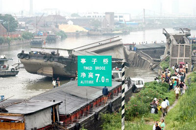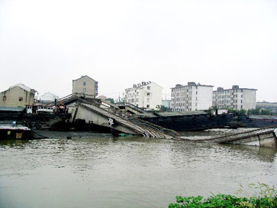 At about noon on September 1, a cargo ship traveling through the Hengtang section of the Beijing-Hangzhou Grand Canal struck the Tingzi Bridge, near Suzhou, causing it to collapse.