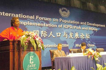 The forum, held under the auspices of the United Nations Population Fund (UNFPA) addressed such topics as poverty alleviation; reproductive health and family planning; HIV/AIDS prevention, control and care; adolescent sexual and reproductive health; empowerment of women; and the role of NGOs.