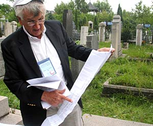 A curtain of rain enveloped the solemn Huangshan (Royal Hill) Jewish Cemetery, located in an eastern suburb of Harbin, Heilongjiang Province, on June 25, 2004. Praying in Hebrew and putting stones on the grave in accordance with Jewish tradition, Ehud Olmert, visiting Israeli vice premier and trade minister, paid his respects at the tomb of his grandfather.