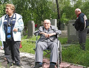 While his wife made rubbings from the somewhat eroded inscriptions on the tombstone, Henry M. Strage, from London, displayed his family tree in front of his grandfather's tomb. Strage's grandfather fled Russia in 1903 and walked to what was then Manchuria. In 1905 he went to Harbin to open a small shop engaging in the fur trade. By then, his entire family of ten brothers and sisters were all living in Harbin. Strage's grandfather, who died in 1945, was buried in the city, as were two of his sisters. The rest went to the United States, Canada and Australia.