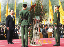 "It is very significant to be here to attend the ceremony. People on both sides of the Taiwan Straits are Chinese. Nothing can, or should, separate them from each other, from the same root, the same clan and the same ancestor. Blood is always thicker than water," he said.