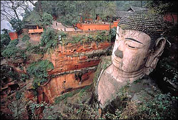 The world's largest sitting Buddha, located in southwest China's Sichuan Province, is suffering visible erosion caused by acid rain after receiving a facelift only four years ago, China Daily reported on Tuesday.