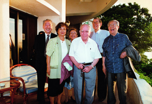 Group photo in front of the former headquarters of the CDL in Hong Kong: Li Yun (second left), former secretary-general of CWI, friend Gu Jinxin (left), Chinese ballet pioneer Dai Ailian (first right) and veteran CDL worker Pan Biao.