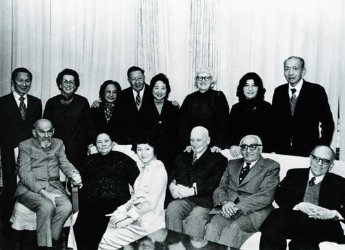 Soong Ching Ling with Israel Epstein, George Hatem (second right, front), Rewi Alley (third right, front) Max Granich (first left, front)and other Chinese and foreign friends (1980).