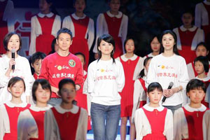 Hong Kong heartthrob Nicholas Tse sang the well-known theme "Chinese People" to a nearly full house of about 6,000 people who waved glow sticks, clapped and sang along at the Workers' Gymnasium in Beijing.