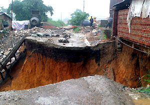 Rainstorms caused the collapse of the Longchuan-Huizhou part of the Beijing-Kowloon railway line in eastern Guangdong, leaving dozens of trains delayed or cancelled. By press time, local rescuers were rushing to repair the track in spite of the rain.