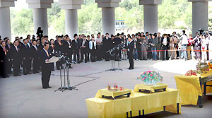 In his elegiac addressing to Huangdi, who was regarded as the ancestor of all the Chinese, Soong said all the Chinese should not forget their root and origin and both the mainland and Taiwan are in the same family.