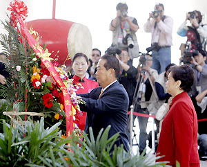 Soong led his PFP delegation to pay homage to the mausoleum of Huangdi, more than 100 kilometers away from Xi'an, capital of northwest China's Shaanxi Province, the first leg of Soong's nine-day mainland visit.