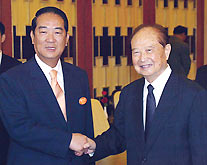 During his meeting with visiting PFP Chairman James Soong in Shanghai, Wang said it's positive that the PFP remained committed to the "1992 Consensus" and that people on both sides of the Taiwan Straits are "as close as flesh and blood."