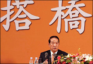 "The times and the Chinese people require us political party leaders across the Taiwan Straits to work hard in this regard," said Hu, emphasizing that people on both sides are closely tied by 5,000 years of historical and cultural tradition.